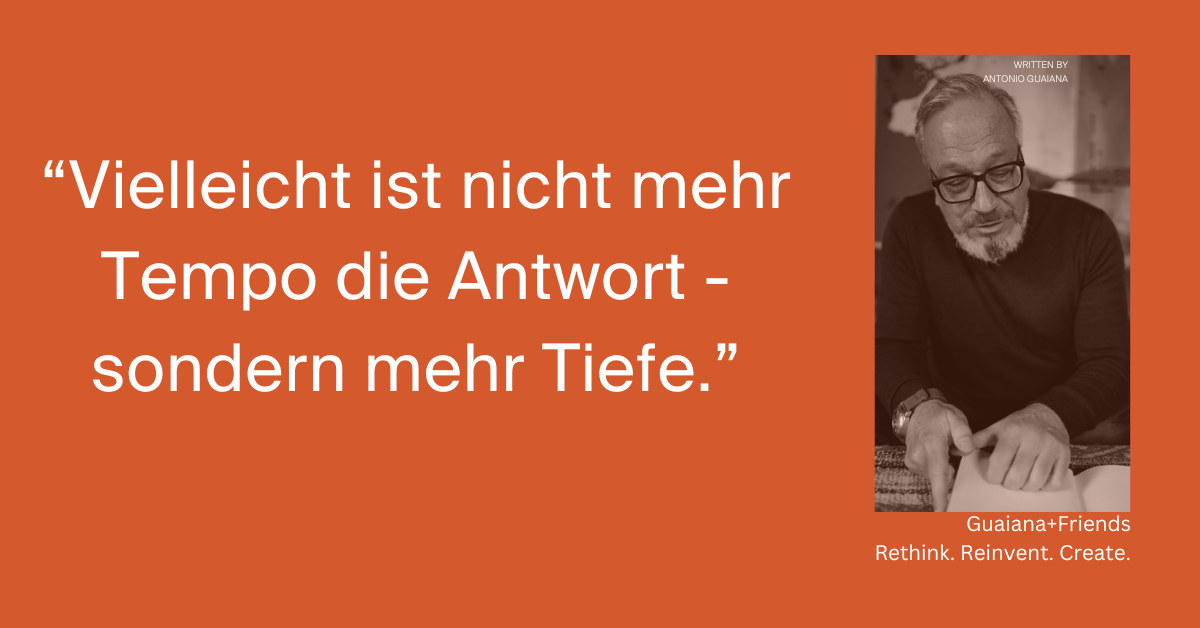 Vielleicht ist nicht mehr Tempo die Antwort, sondern mehr Tiefe. In einer Welt, die widersprüchlicher, dynamischer und ambivalenter geworden ist, brauchen wir andere Formen des Miteinanders, neue Wege, um der Ungewissheit zu begegnen.